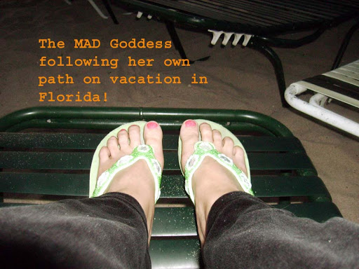 I’m so glad to see that the MadGoddess is back.Whew. That’s a lot to think about, and be in the midst of experiencing and sorting out. As my new lawyer said the other day, “you enabled him for years to think he can control you.” It’s that darn desire to please everyone so that by the time our blood stops they can’t hear our voices, only their own. I say put on the sandals to show off the pedicure and find a place of your own to write in–to breathe (I can never remember if it’s with an e or not) in. If he can’t give you space at home, then give yourself the space. Taping a soap opera. Men should be so ashamed of themselves for never growing up. Soak up the sun!